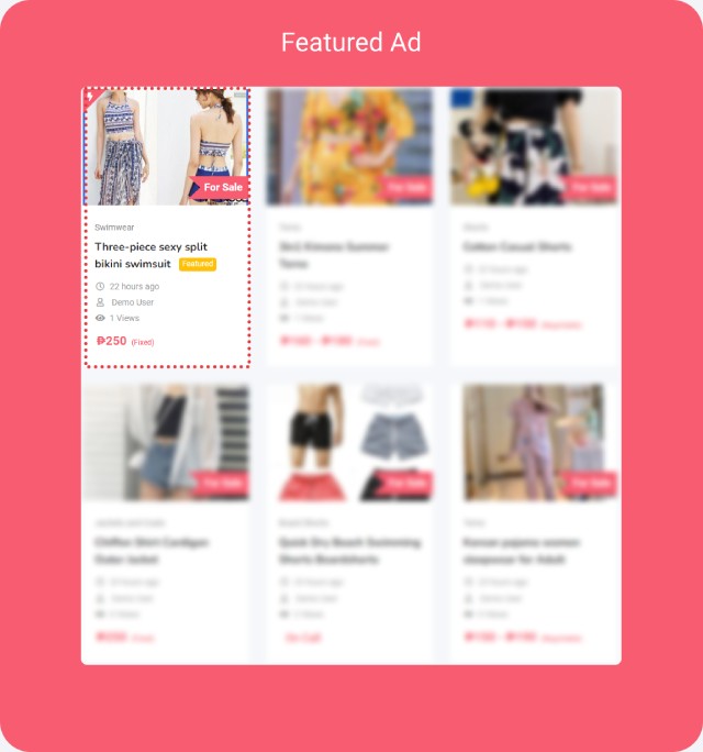 - Featured ad will be prominent in the designated area with a featured icon in left, however, the visibility also depends on demand for the product, (e.g: the users are interested in the product or not.)